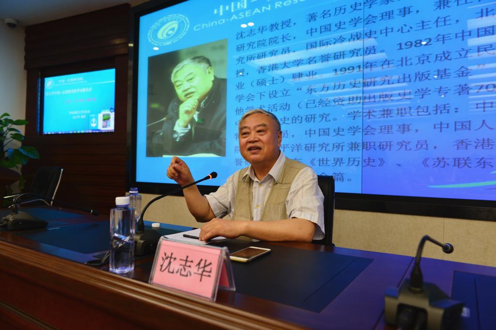 On the afternoon of June 27, Professor Shen Zhihua from History Department, also Dean of the Institute for Studies of China's Neighnoring Countries and Regions(ISCNCR) & Center for Cold War International History Studies(CCWIHS) has given an academic report in CARI. Professor Liang Shuhong, Deputy Dean of CARI, hosted the report, and all the teachers and students came to listen.